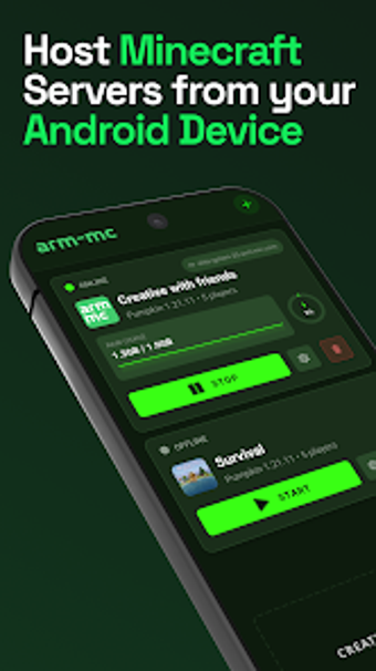 该应用程序支持在移动设备上无缝托管服务器,使用户能够在移动中轻松创建和管理多人游戏会话。凭借完整的 RCON 支持,玩家可以轻松管理服务器设置,踢出或禁止用户,并调整游戏规则。目前处于公共 Alpha 阶段,ARM-MC 非常适合创造模式和迷你游戏,正在开发更高级的功能。该应用程序是一个独立工具,与 Mojang AB 或 Microsoft 没有任何关联。